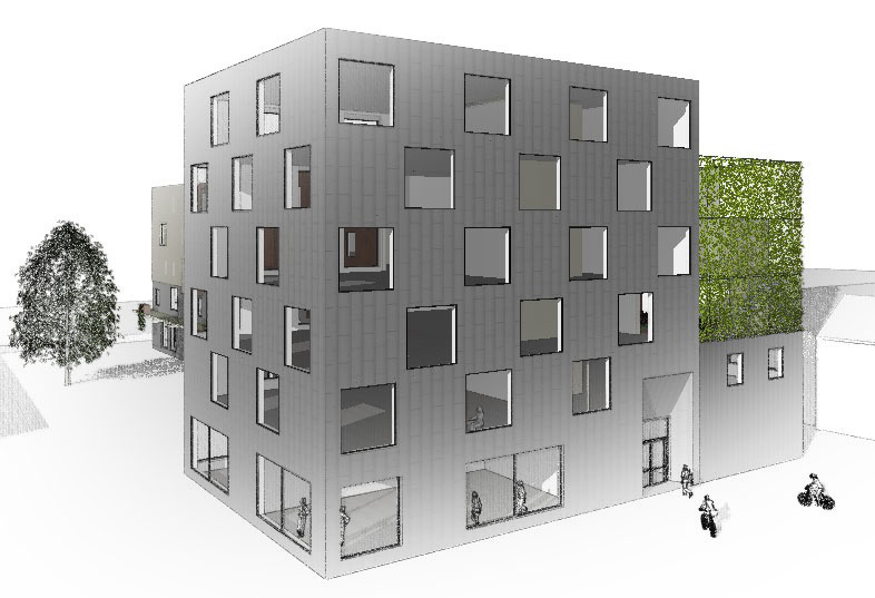 Volymer och bildmontage inför upprustning av kvarter i industriområde i Uppsala. Kund VESPR.