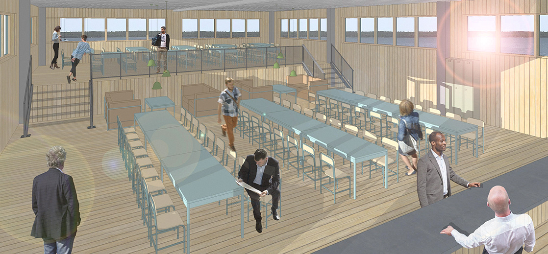 Vid försvarets gamla marina varv utanför Fårösund står ett nedlagt snickeri. Gestaltningsidé för ny användning. Samarbete med Engma AB.